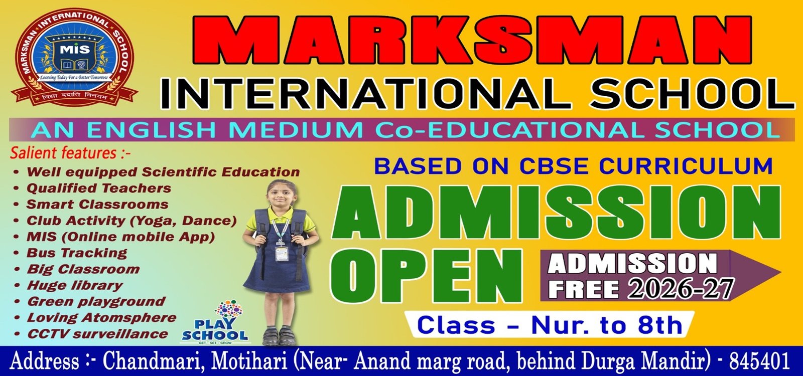 Marksman International School is an innovative effort to integrate the best ideas in education taken from all good practices in India and around the world. For instance, we have borrowed the"Nai Talim" principles of Mahatma Gandhi where by learning takes place by doing, where knowledge and activities are not separated from each other, and the virtuous character of the child is built to last a life time. We also strive to make the principle of universal peace and tolerance as the basis of MIS. so that every child who comes to us leaves the school with a habit of humility making our future world a place of harmony and goodwill towards all.